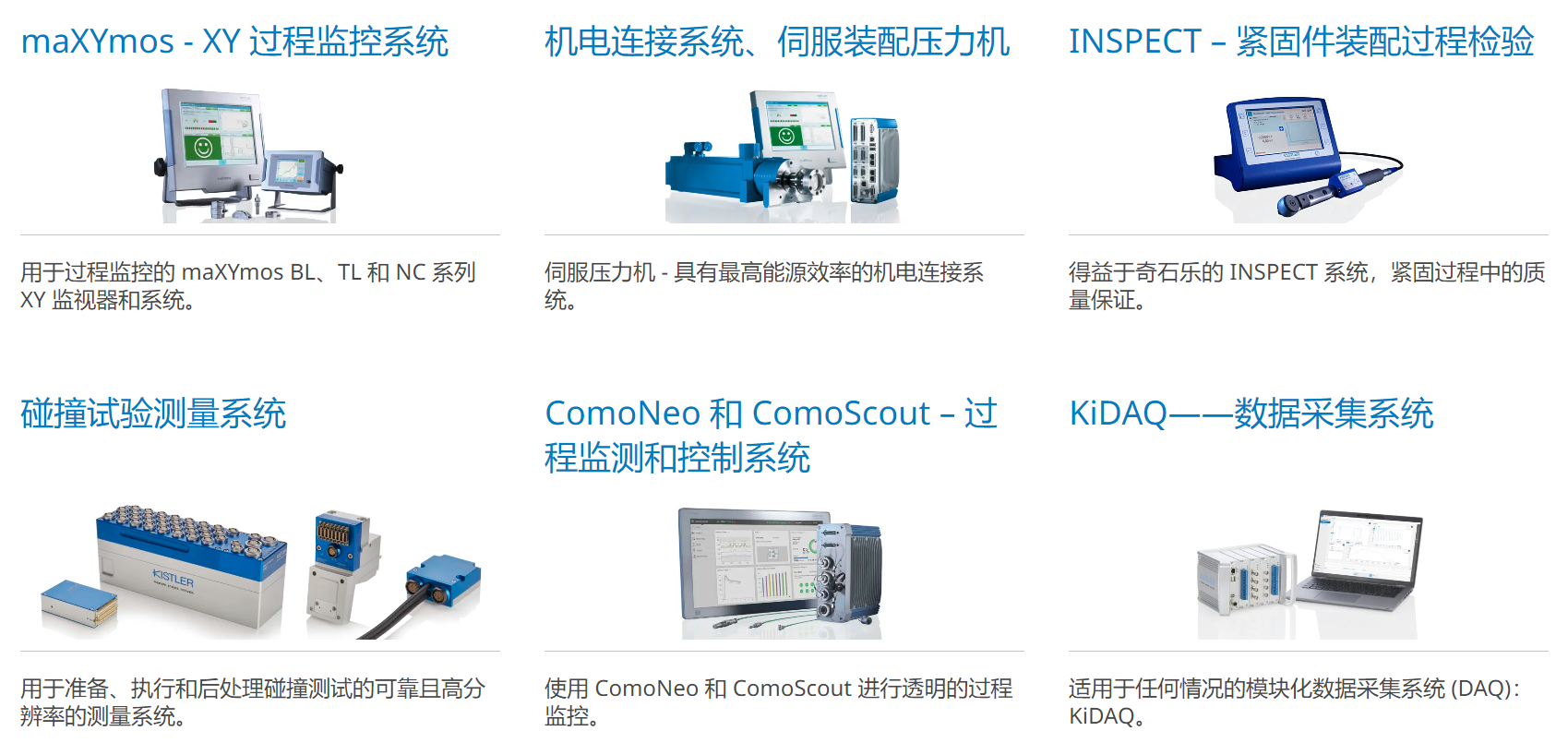 用于過程監(jiān)控的 maXYmos BL、maXYmos TL 和 maXYmos NC 系列的 XY 監(jiān)視器可以根據曲線檢查和評估產品或生產步驟的質量。用戶可以應用評估對象,以使曲線評估適應單獨的監(jiān)控任務。根據此規(guī)范,maXYmos BL、TL 和 NC 可以檢查每個工件并確定零件的好壞。 maXYmos TL ML 過程監(jiān)控系統(tǒng)專為滿足醫(yī)療設備制造商的需求而設計。過程監(jiān)控的集成已成為工業(yè)生產中日益重要的因素。特別是在壓接和連接應用領域,奇石樂塔頭和塔肩制造的機電數(shù)控連接系統(tǒng)優(yōu)于傳統(tǒng)系統(tǒng):它們在降低能源成本、提高系統(tǒng)利用率和整體提升方面發(fā)揮著重要作用。在生產效率方面。奇石樂提供力范圍高達 700 kN 的全系列尖端連接系統(tǒng)——從緊湊的標準化單一模塊到根據客戶特定要求量身定制的定制設計——奇石樂正在為全球市場樹立新標準。