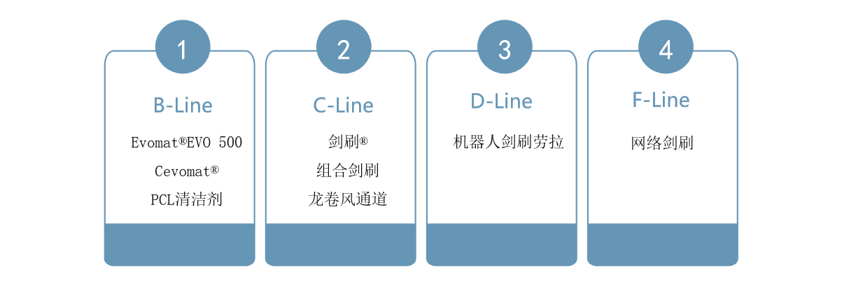 劍刷和龍卷風通道為工業(yè)生產(chǎn)線中的板和面板提供了非常有效的表面清潔。由于這些機器的緊湊設計和節(jié)省空間的足跡,它們可以很容易地集成到現(xiàn)有的傳送帶系統(tǒng)中。 C-Line的模塊化系統(tǒng)創(chuàng)建了獨特的清潔裝置,完美地量身定制以滿足每個客戶的特定要求